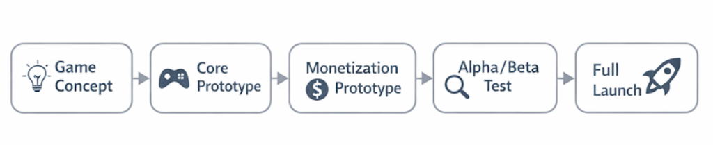 after “core gameplay” and “monetization prototype design” are already in place.