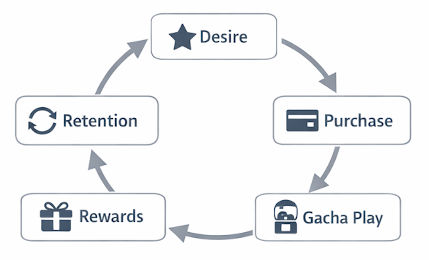 From there, gacha design should be thought about not as “points,” but as a “line.” In other words, not as isolated elements, but as a flow.